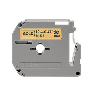 • Brother M-Tape M-831 12mm Black On Gold Non-Laminated Tape