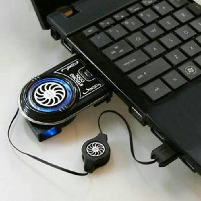 Fan ini langsung menghisap keluar udara panas laptop yang berasal dari ventilasi laptop. Ukuran kecil sehingga mudah dibawa-bawa.