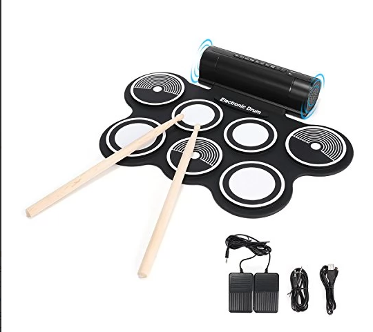 Portable Roll Up Drum Pad Set Kit with Build-in Speaker (No CD)