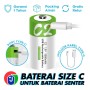 Baterai C juga punya bentuk tabung yang lebih besar dibandingkan AA. Biasanya baterai C digunakan untuk senter.